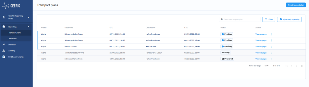 Finally, all EuRIS users with a successfully claimed vessel or granted reporting rights for a vessel can automatically access the CEERIS platform at https://www.ceeris.eu with their EuRIS credentials through a single sign-on principle to report for their voyages.