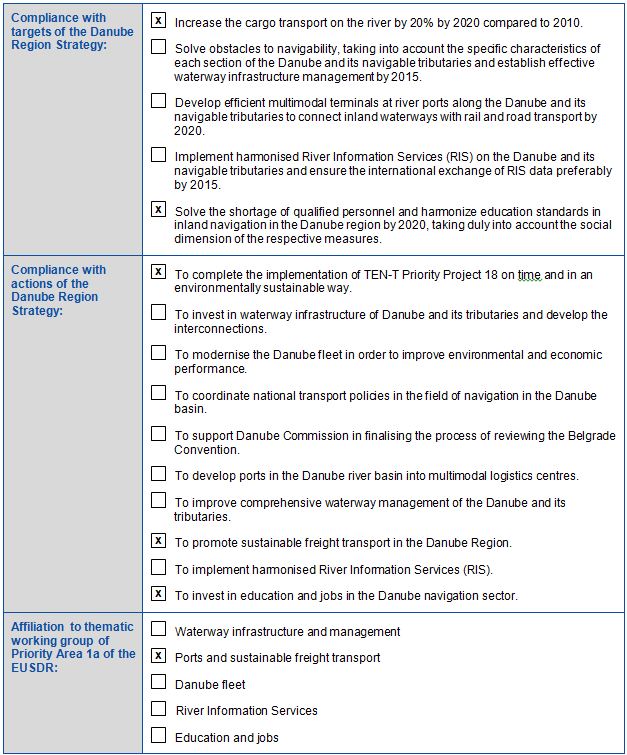 The port is located on the TEN-T Rhine-Danube core network corridor. The project is one of common interest with high relevance for the trans-European transport network.
