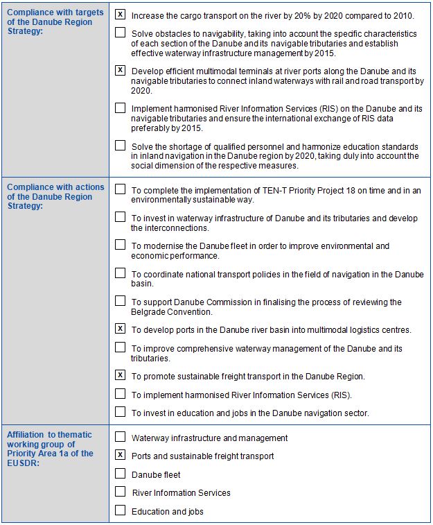 - Analysis of logistics requirements and support of a modal shift towards Danube logistics