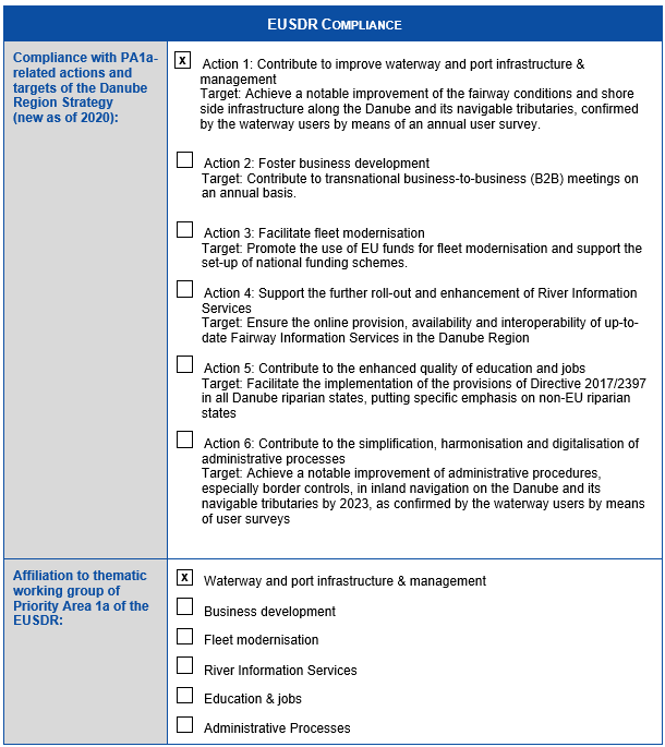 The project contributes to the improvement of fairway conditions, one of the targets of EUSDR PA1A.