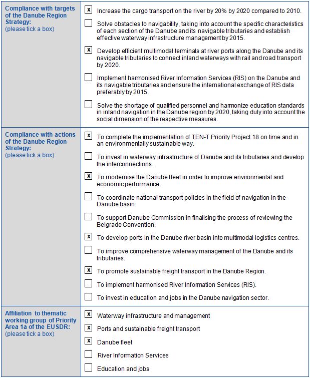 The Green Chain project idea addressed three (out of four) pillars of the EU Strategy for Danube Region: (1) Connecting the Danube Region (design of innovative shallow-draught vessels that should enable efficient connections between the Black Sea maritime harbours and inland ports on the Danube and on the secondary waterway network; concepts for improvement of port infrastructure, management and operation); (2) Protecting the Environment (concepts for sustainable waterway development and design of river-adapted ships) and (3) Building Prosperity (two-way knowledge transfer between the Rhine and the Danube basin; transferability of technology and policy).