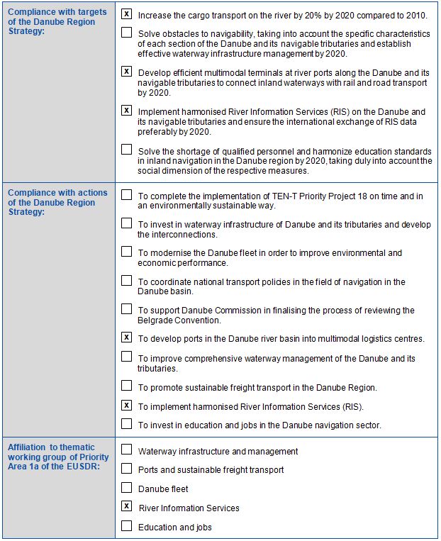 The project will have positive impacts on competitiveness of inland waterway transport, modal split, traffic management, service quality, safety and security.