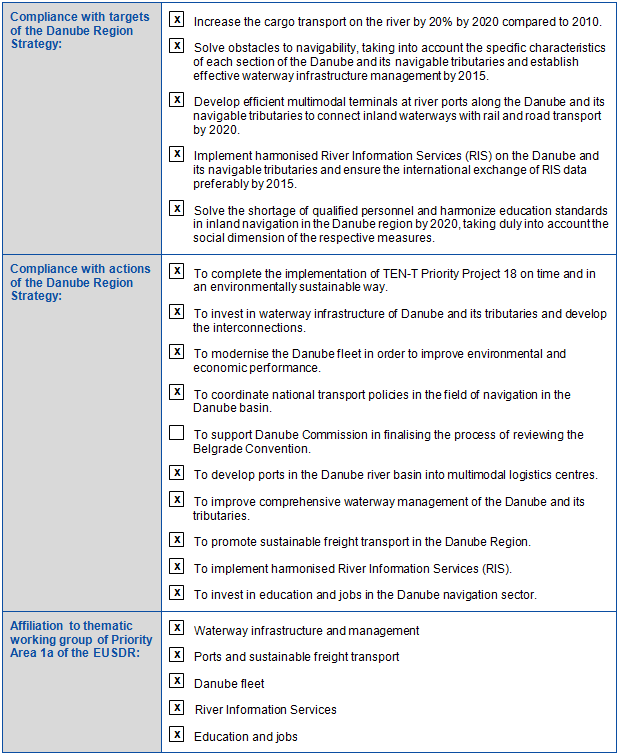 EU funds: 1,999,995 EUR were funded by FP7- Seventh Frameworkprogramme for Research and Technological Development “TRANSPORT” 2007 – 2013 (Sub-programme area: SST-2012.2-.2 Towards an implementation of the NAIADES action areas; Reference: 321498)