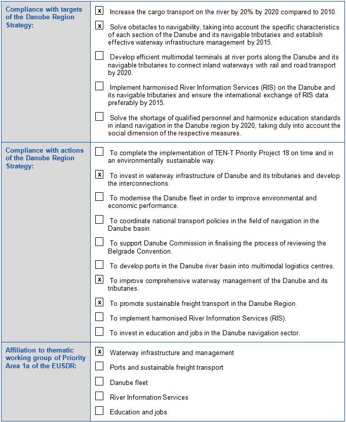 The project is located on the common border stretch of the river between the Republic of Croatia and the Republic of Serbia. As the transport of goods on the Danube and its tributaries has an international and long-distance character, the entire Danube region will benefit from the project.