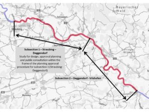Policy-makers finally decided to develop the critical sector from Straubing to Vilshofen according to variant A by implementing solely river regulation measures (i.e. without lock/storage) and to immediately realize flood protection measures. Therefore, two projects (navigation and flood protection) were set up and two subsections were defined for the waterway upgrading project: Straubing – Deggendorf (subsection 1) and Deggendorf – Vilshofen (subsection 2).